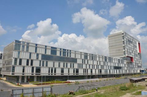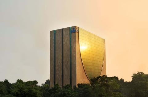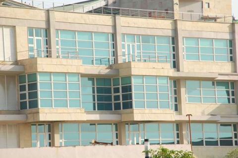 The modern building façade incorporates energy-efficient glass panels which ensure sustainable running costs. These glass panes are coated with various metal oxides to reduce the penetration of solar heat into the building.