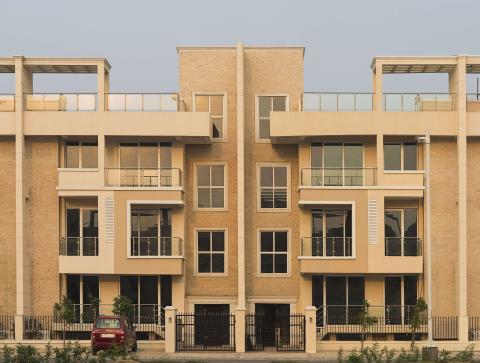 The sliding doors and windows of this residential building are designed with energy-efficient architectural glass which brings in maximum natural light, controls solar heat gain and helps in reducing the electricity bills.