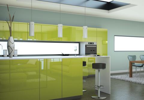 The lustrous surface of the yellow lacquered glass panels add brightness and form an easy-to-clean surface which is easy to maintain.